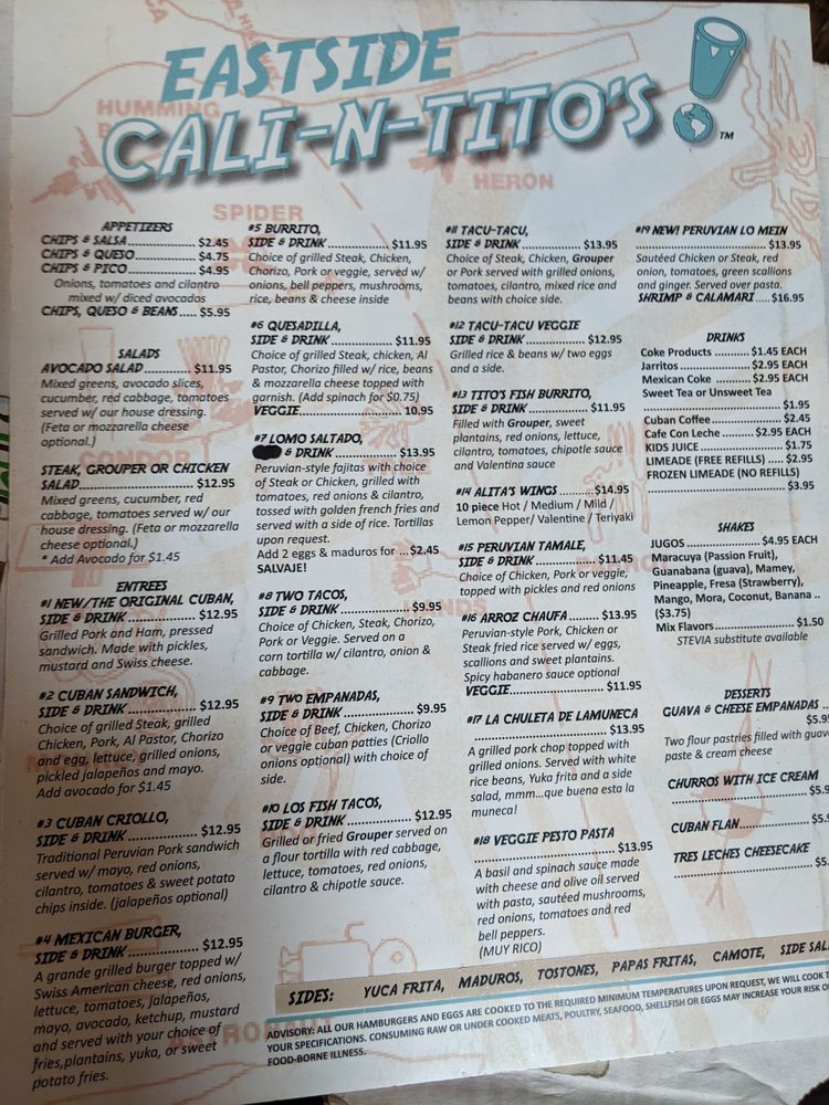 Cali N Tito's offers a welcoming atmosphere with outdoor seating, perfect for families and groups. With convenient delivery and takeout options, experiencing this delightful menu has never been easier. Come enjoy a delicious meal that celebrates the lively flavors of Peru!